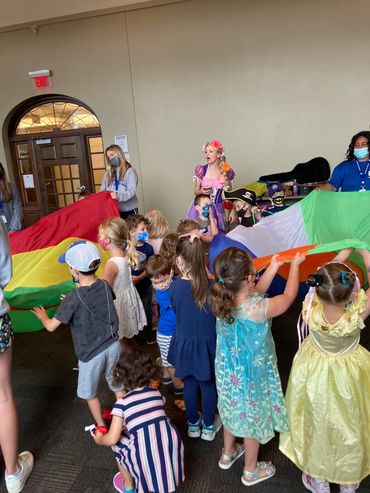A mascot type show can include music and dance, activities such as Limbo, Hokey Pokey, and parachute game, meet and greet, and of course, posing for pictures. Balloon twisting and/or face painting can be arranged.